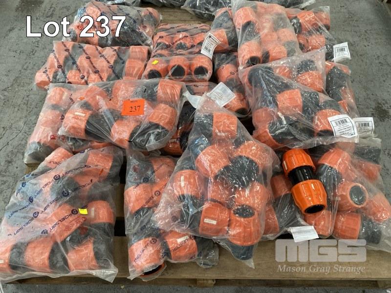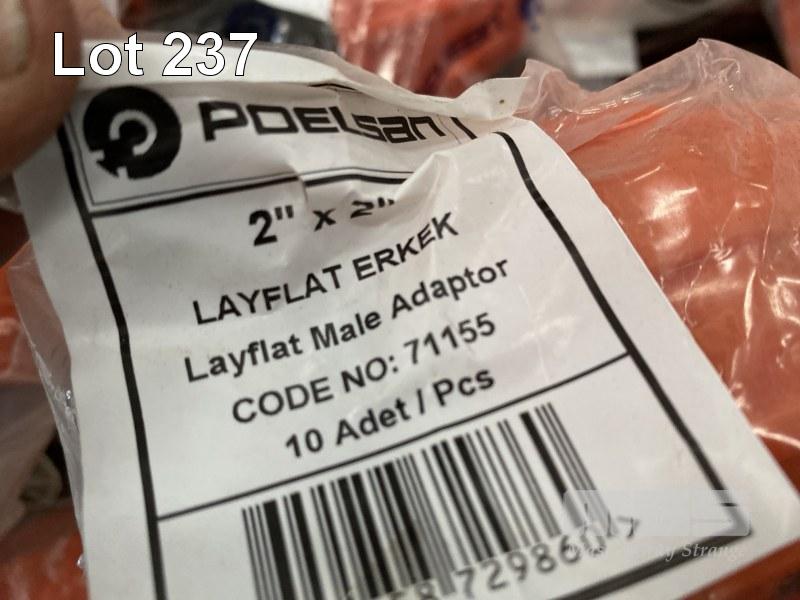 POLY IRRIGATION FITTINGS, POELSAN INCLUDING LAY FLAT ADAPTORS, ELBOWS, END CAPS, JOINERS,E TC 2 ", 17 x BAGS (APPROX), 10/BAG