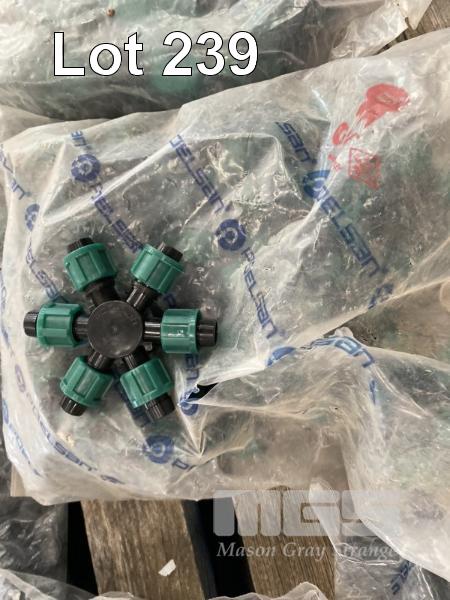 POLY IRRIGATION FITTINGS, POELSAN INCLUDING SPRAY HEADS, RISERS & STAKES, DRIPPER HEADS, 20mm TEE JOINTS, ELBOWS, ETC 14 x BAGS (APPROX), 1 x PALLET