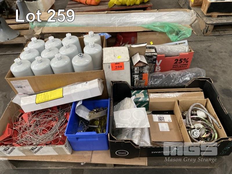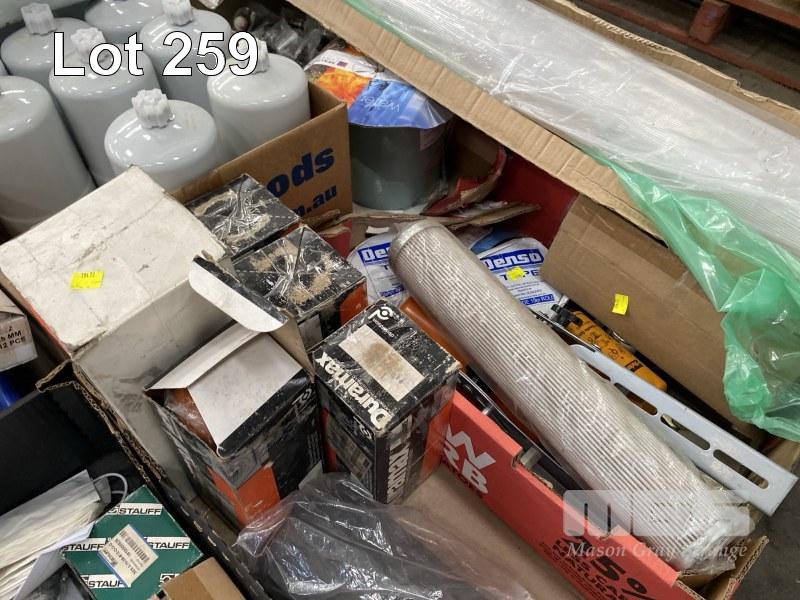 ASSORTED OIL & FUEL FILTES, FLEETGUARD, DURAMAX RUBBER MOUNTS, COUPLINGS, LOCK OUT DEVICES, SEALS, DENSO TAPE, FLURO LIGHT FIXTURE, ETC 1 x PALLET