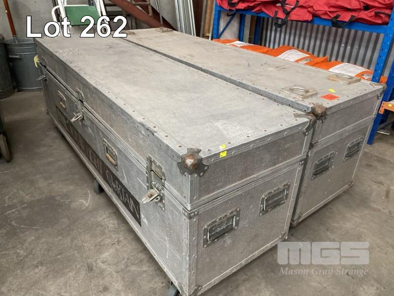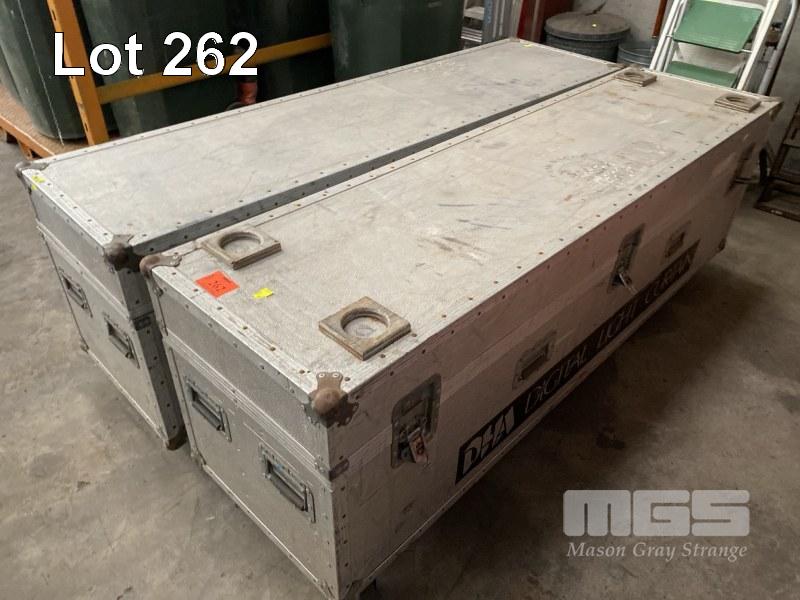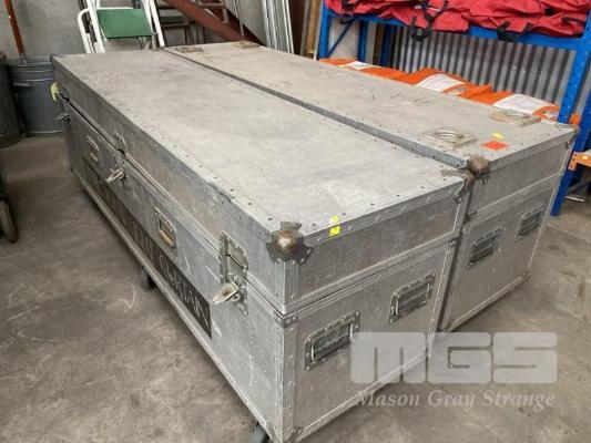2 x ALLOY TRANSPORT/STORAGE CASES, MOBILE, PADDED, 200 x 540 x 720mm (H)