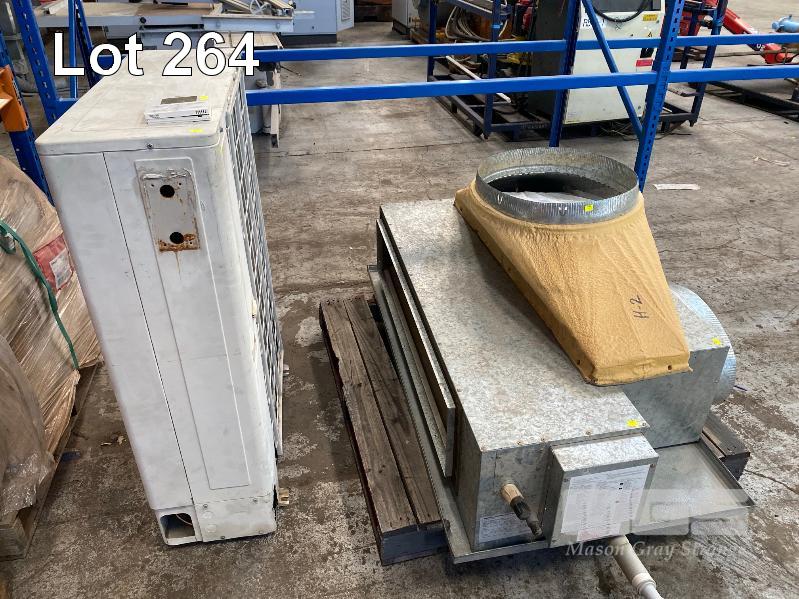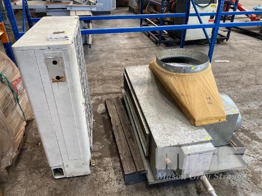 SPLIT SYSTEM A/C UNIT, DAIKIN MOD: FDY125KVI WITH COMPRESSOR UNIT, INDOOR IN ROOF HEAD FAN UNIT, REMOTE & DUCTING, 240V