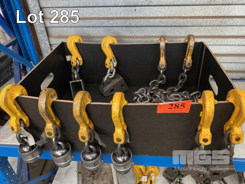6 x QUICK HITCH LIFTING ATTACHMENTS, 6.4T & 2 x CHAIN LEGS 1 x BOX