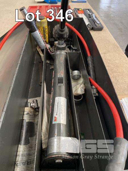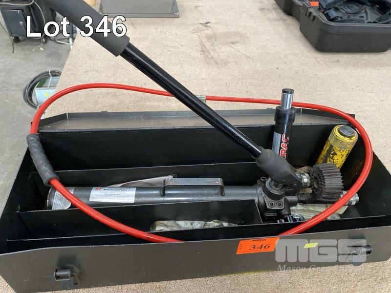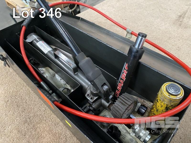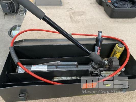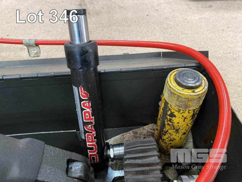 HYDRAULIC POWER PACK, DURAPAC, MANUAL PUMP MOD: P-270, 2 STAGE, 700 BAR WITH HOSE & 2 x RAMS, DURAPAC RG-55 & ENERPAC PC104.0/12 IN STEEL CARRY CASE