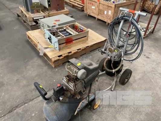 AIRLESS SPRAY PAINT MACHINE, MAXTRA MOD: ML-75P5-TF-M8 MOBILE, 240V & AIR COMPRESSOR, GMC TYPE: 1 30 LITRE, 1600w< 240V