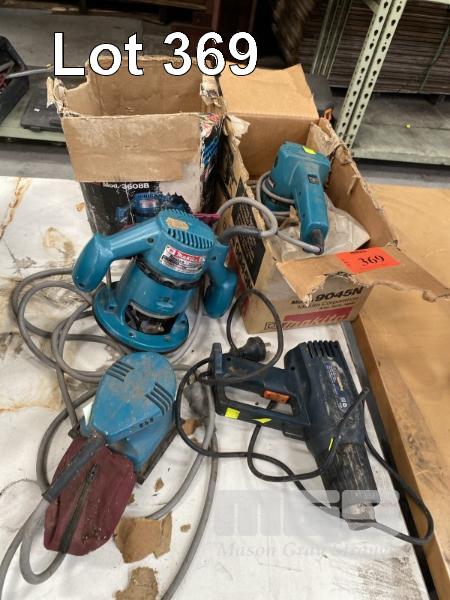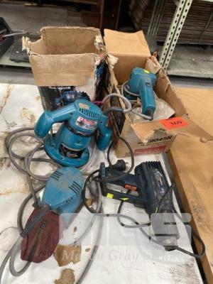 MAKITA ROUTER, PALM SANDER, FINISHING SANDER WITH GMC HEAT GUN, 240V