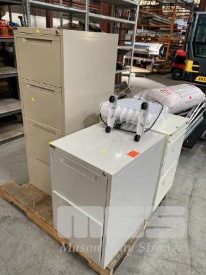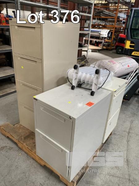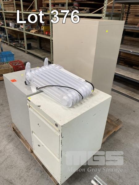 STEEL FILING CABINETS, 2 x 2 DRAWER & 1 x 4 DRAWER, CREAM & WHITE & RADIANT HEATER, 240V