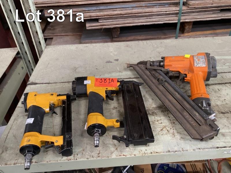 PNEUMATIC NAIL GUN, PASCO, MODEL: BA65C & 2 x PNEUMATIC FINISHING STAPLE GUNS
