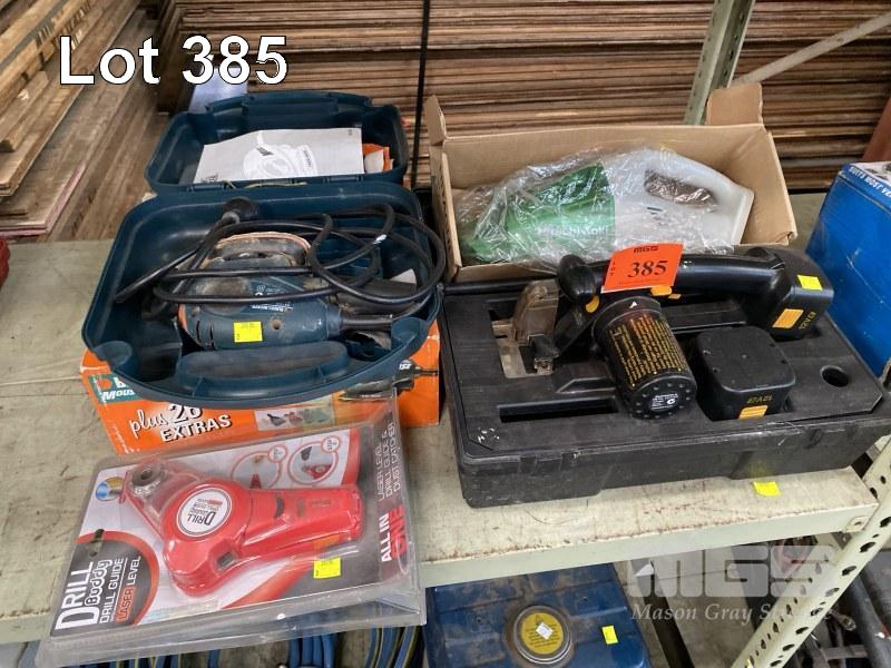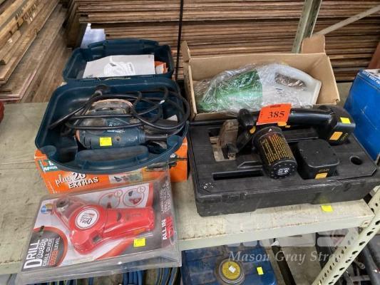 SANDER, B&D IN CASE, 240V, CIRCULAR SAW, PANASONIC, 2 x BATTERIES & CHARGER, HITACHI VACUUM & DRILL BUDDY