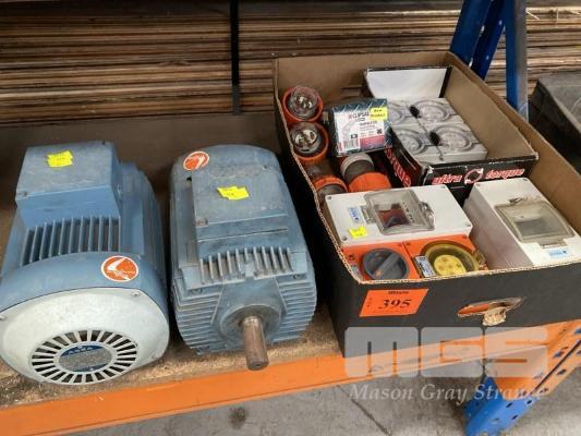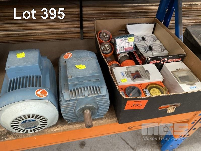 2 x 3 PHASE 415V 0.75kw ASEA MOTORS & 1 x TRAY ASSORTED 3 PHASE PLUGS/OUTLETS, 20/32AMP