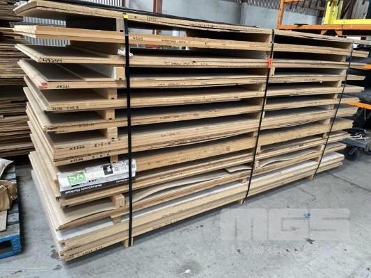 39 (APPROX) x LAMINATE MDF SHEETS, 3100 x 1200 x 12-16mm THICK ASSORTED COLOURS, 1 x PACK