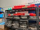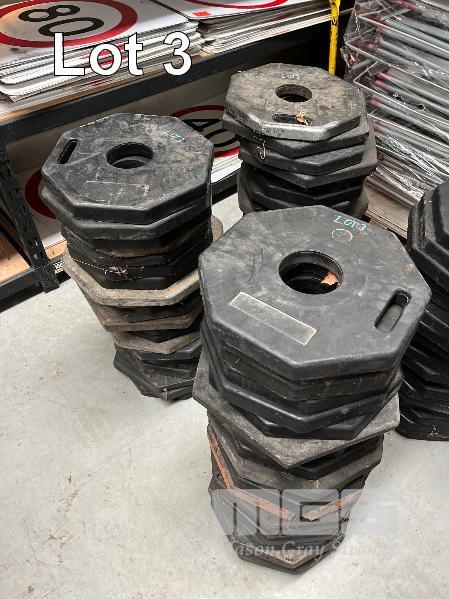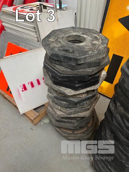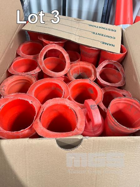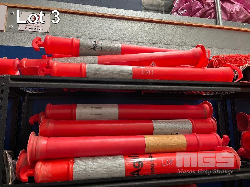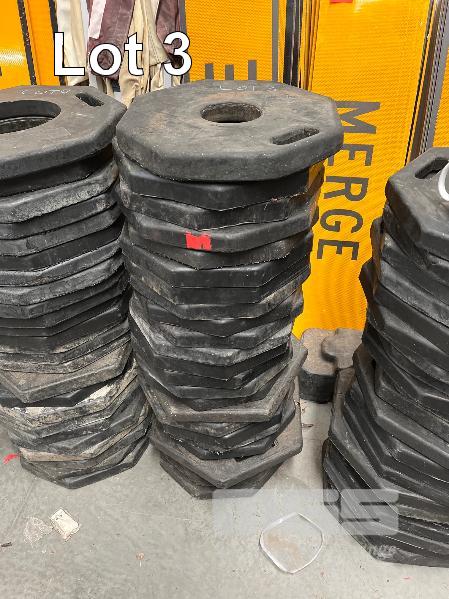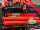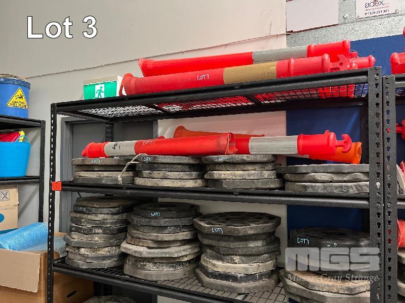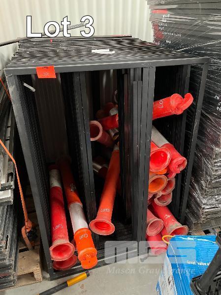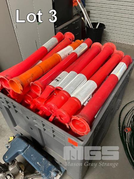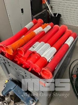 LARGE QUANTITY PLASTIC BOLLARDS & BASES, VARIOUS CONDITIONS, CRATE INCLUDED