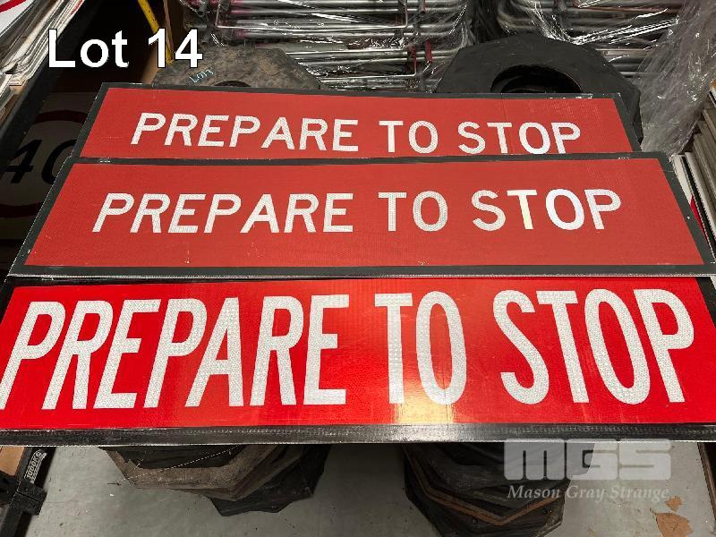 LARGE QUANTITY 'PREPARE TO STOP' REFLECTIVE ROAD SIGNS, CORFLUTE, 1200 x 300mm, APPROX 110 TOTAL