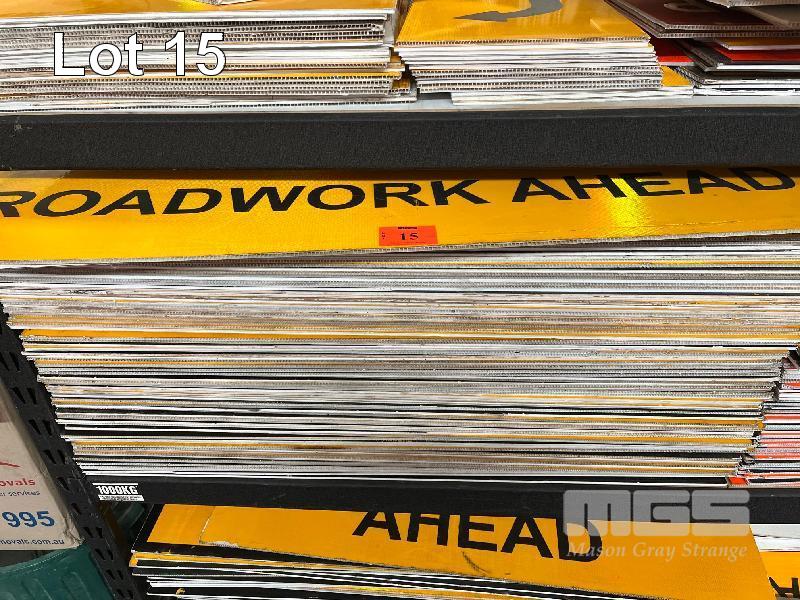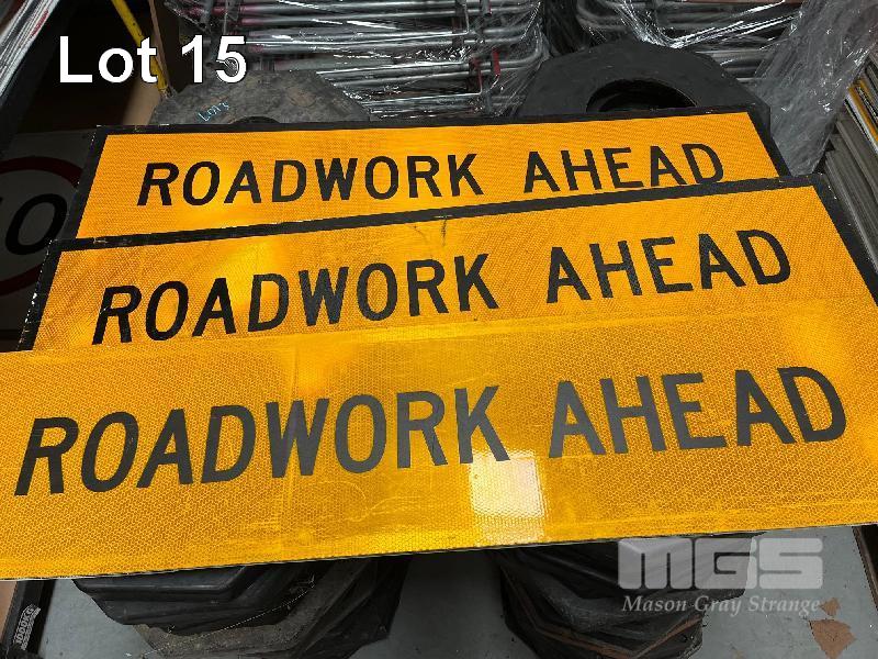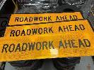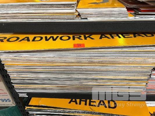 LARGE QUANTITY 'ROADWORK AHEAD' REFLECTIVE ROAD SIGNS, CORFLUTE, 1200 x 300mm, APPROX 110 TOTAL