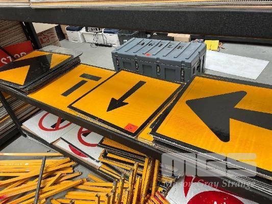 APPROX 50 x ASSORTED DIRECTIONAL REFLECTIVE ROAD SIGNS, CORFLUTE & METAL, 600 x 600mm