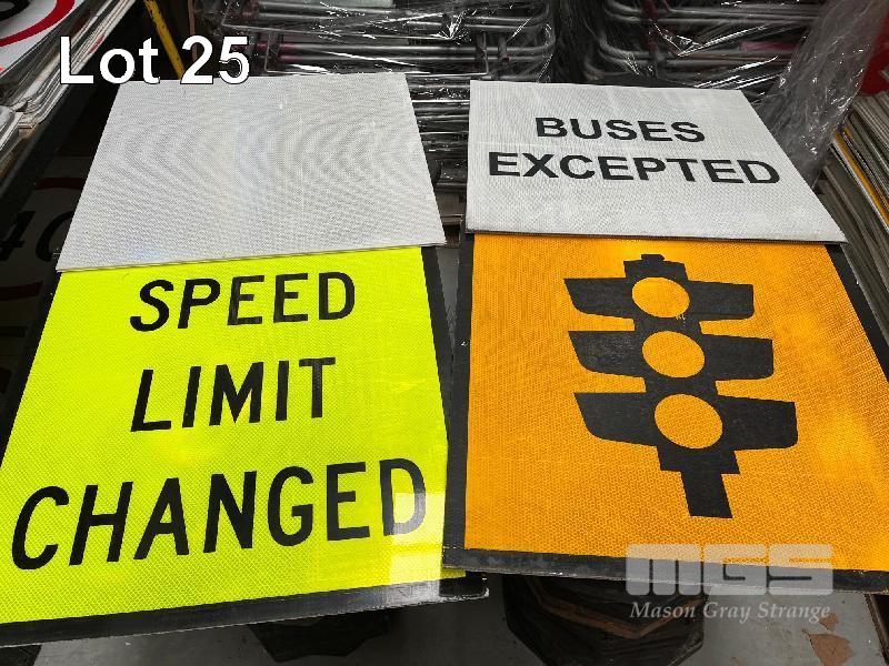 ASSORTED SPEED SIGNS, TRAFFIC LIGHTS, ARROWS