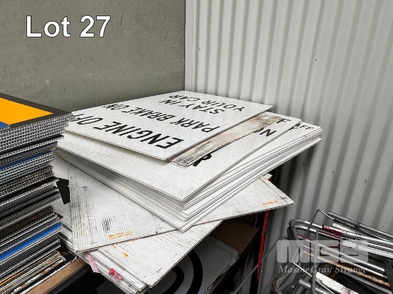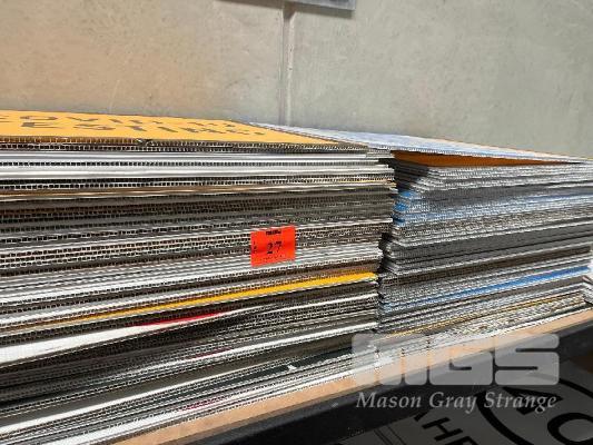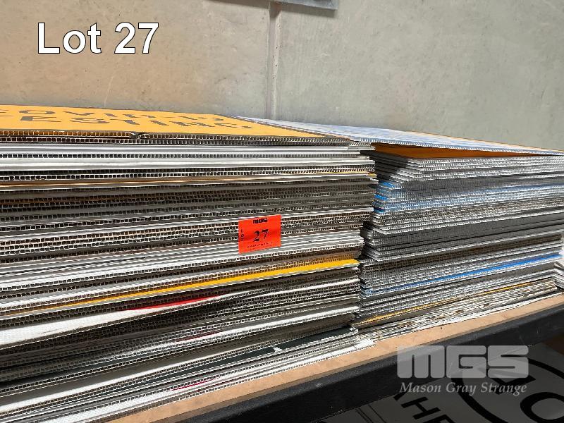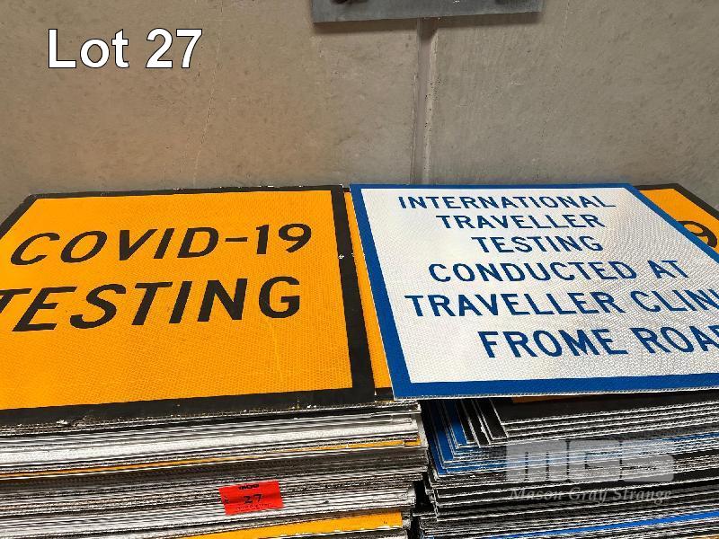 LARGE QUANTITY REFLECTIVE ROAD SIGNS, COVID 19 TESTING, BLANKS, 600 x 600mm APPROX 140 TOTAL APPROX 30 x REFLECTIVE ROAD SIGNS, CORFLUTE ASSORTED CROWD CONTROL, 1000 x 600mm