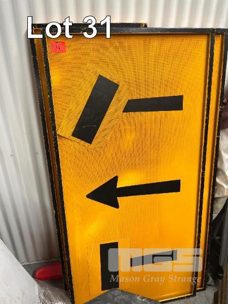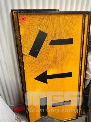 2 x LARGE STEEL FRAME DIRECTIONAL REFLECTIVE ROAD SIGNS, 1800 x 900mm,