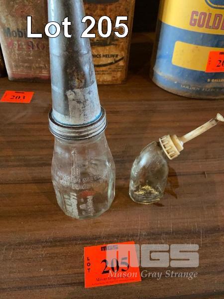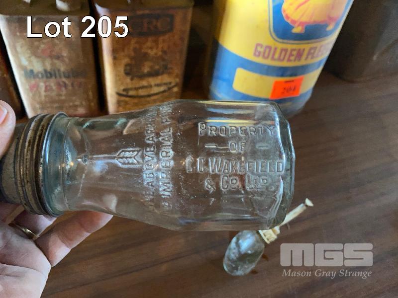 WAKEFIELD OIL BOTTLE, TIN TOP & LUCAS BATTERY ACID BOTTLE