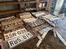 HUGE QUANTITY OLD NUMBER PLATES, RAISED LETTERING & PRESSED STEEL