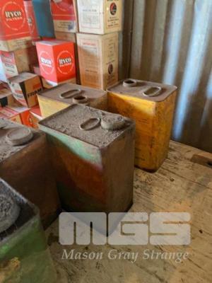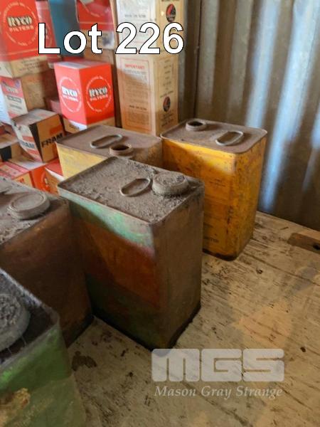 5 x ASSORTED 1 GALLON TINS, GOLDEN FLEECE, CASTROL & FIREZ OIL, WIRE HANDLE