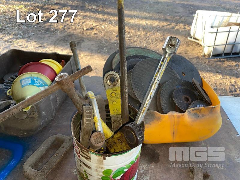 BENCH & CONTENTS, FILES, SAWS, MALLETS, DISCS, ETC