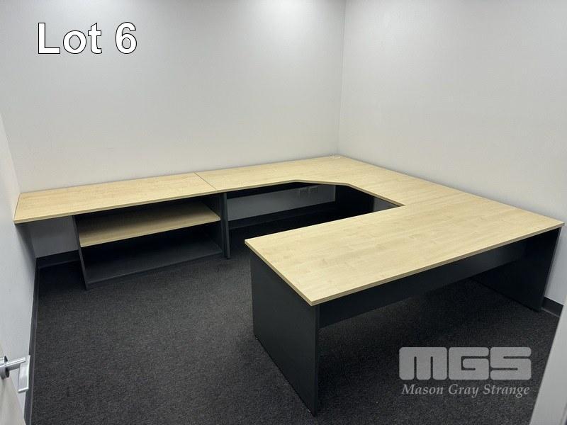 EXECUTIVE DESK, BEECH AND CHARCOAL LAMINATE, U SHAPED