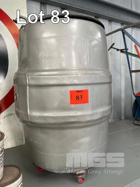 EARLY BEER KEG, 18 GALLON ON CASTORS WITH LIFT OFF LID