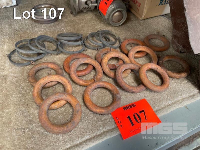 14 x WOODEN RINGS WITH EYELETS & 11 x STEEL RINGS WITH EYELETS