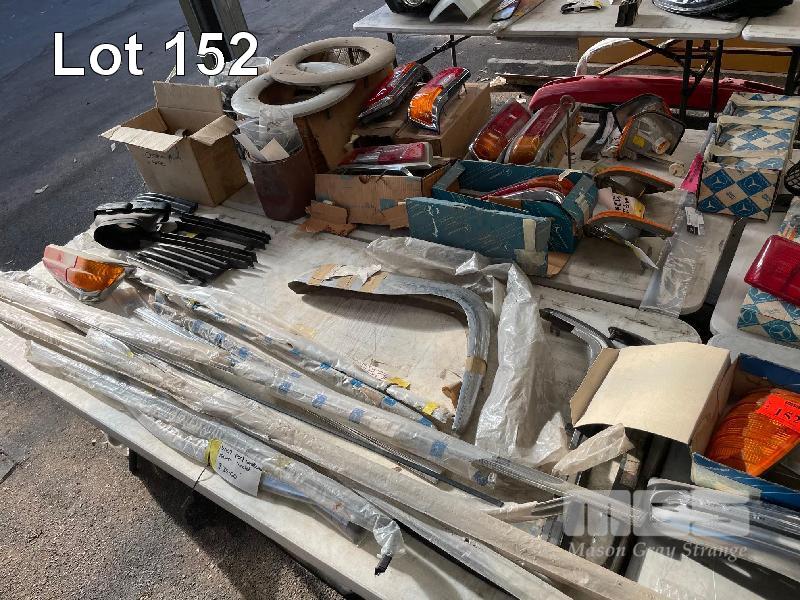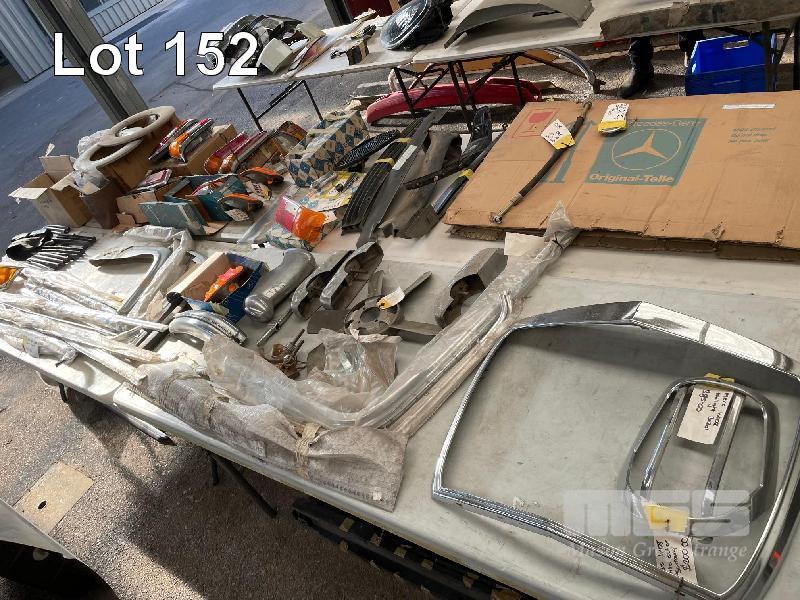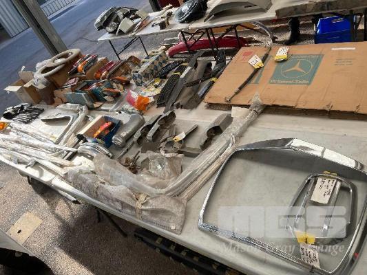 ASSORTED MERCEDES BENZ PARTS, TAIL LIGHTS, INDICATOR LIGHTS, GRILL SECTIONS, MOULDS, BUMPER SECTIONS, HEADLIGHTS, ETC CONTENTS 4 x TABLES