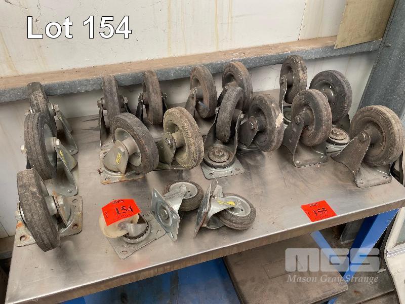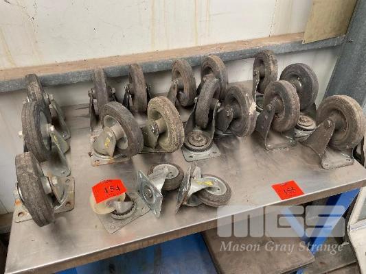 8 x RUBBER FIXED CASTOR WHEELS, 150mm & 7 x RUBBER SWIVEL CASTORS, 150mm
