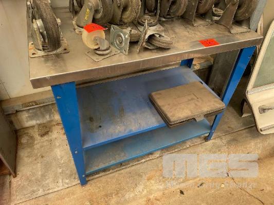 STAINLESS STEEL TOP WORKBENCH, 3 TIER WITH 5 TIER STEEL SHELF