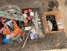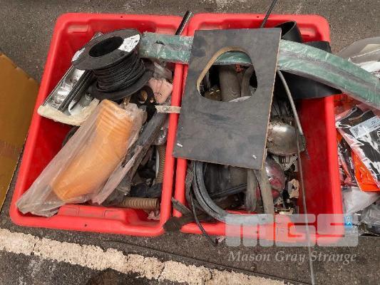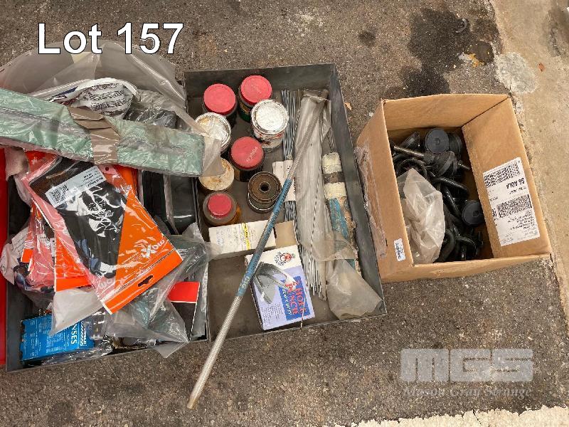 ASSORTED WORKSHOP CONSUMABLES/PARTS, WELDING FLUX & RODS, RUBBER SEALS, PLASTIC CHAIN, ADJUSTABLE FEET, AIR HOSE, ELECTRICAL CABLE, ETC 4 x TUBS