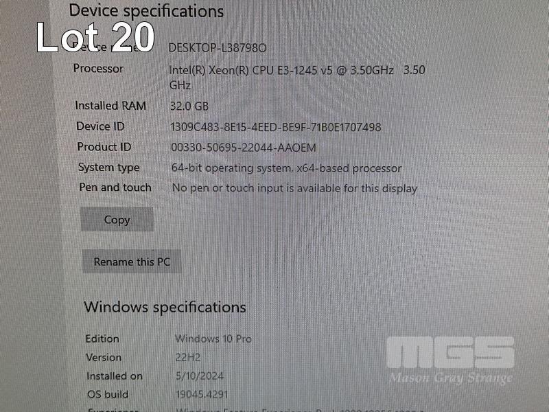 DESKTOP PC, HP Z2 MINI G3 WORKSTATION, XEON E3-1245 v5 @ 3.5GHz, 32GB DDR4 RAM, 512GB NVMe M.2 SSD, INTEL HD GRAPHICS P530, WINDOWS 10 PRO INSTALLED & POWER SUPPLY (230W) (NO KEYBOARD, NO MOUSE) S/N:SGH739SS2V