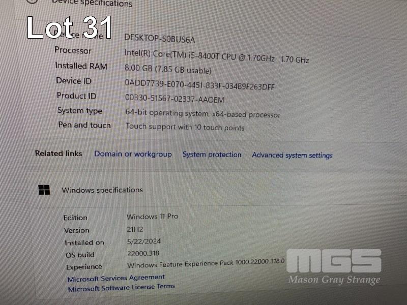 ALL-IN-ONE PC, LENOVO V530-24ICB, TYPE 10UW, CORE i5 8400T (8TH GEN) @ 1.7GHz, 8GB DDR4 RAM, 256GB NVMe M.2 SSD, INBUILT 23.8" TOUCHSCREEN (1920x1080), DVD-RW, INTEL UHD GRAPHICS 630, WEBCAM, Wi-Fi, BLUETOOTH, WINDOWS 11 PRO INSTALLED & POWER SUPPLY (NO KEYBOARD, NO MOUSE) S/N:MP1F678E