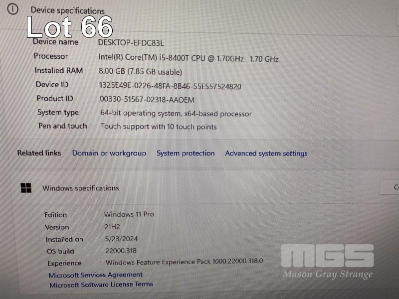 ALL-IN-ONE PC, LENOVO V530-24ICB, TYPE 10UW, CORE i5 8400T (8TH GEN) @ 1.7GHz, 8GB DDR4 RAM, 256GB NVMe M.2 SSD, INBUILT 23.8" TOUCHSCREEN (1920x1080), DVD-RW, INTEL UHD GRAPHICS 630, WEBCAM, Wi-Fi, BLUETOOTH, WINDOWS 11 PRO INSTALLED & POWER SUPPLY (NO KEYBOARD, NO MOUSE) S/N:MP1F676U