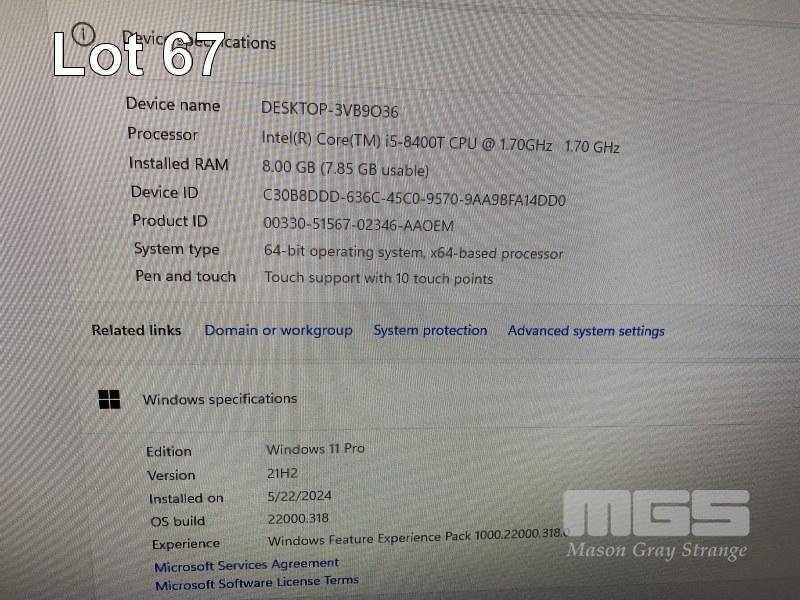ALL-IN-ONE PC, LENOVO V530-24ICB, TYPE 10UW, CORE i5 8400T (8TH GEN) @ 1.7GHz, 8GB DDR4 RAM, 256GB NVMe M.2 SSD, INBUILT 23.8" TOUCHSCREEN (1920x1080), DVD-RW, INTEL UHD GRAPHICS 630, WEBCAM, Wi-Fi, BLUETOOTH, WINDOWS 11 PRO INSTALLED & POWER SUPPLY (NO KEYBOARD, NO MOUSE) S/N:MP1F663C
