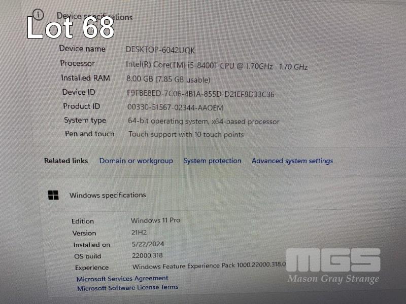 ALL-IN-ONE PC, LENOVO V530-24ICB, TYPE 10UW, CORE i5 8400T (8TH GEN) @ 1.7GHz, 8GB DDR4 RAM, 256GB NVMe M.2 SSD, INBUILT 23.8" TOUCHSCREEN (1920x1080), DVD-RW, INTEL UHD GRAPHICS 630, WEBCAM, Wi-Fi, BLUETOOTH, WINDOWS 11 PRO INSTALLED & POWER SUPPLY (NO KEYBOARD, NO MOUSE) S/N:MP1F663T