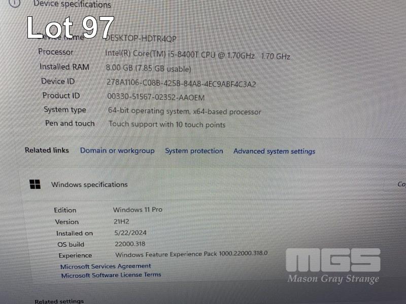 ALL-IN-ONE PC, LENOVO V530-24ICB, TYPE 10UW, CORE i5 8400T (8TH GEN) @ 1.7GHz, 8GB DDR4 RAM, 256GB NVMe M.2 SSD, INBUILT 23.8" TOUCHSCREEN (1920x1080), DVD-RW, INTEL UHD GRAPHICS 630, WEBCAM, Wi-Fi, BLUETOOTH, WINDOWS 11 PRO INSTALLED & POWER SUPPLY (NO KEYBOARD, NO MOUSE) S/N:MP1F6AZA