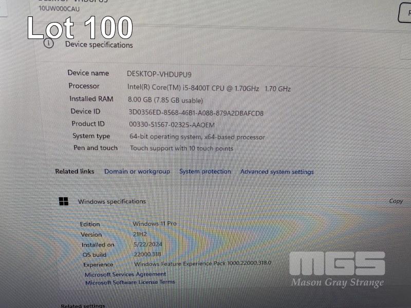 ALL-IN-ONE PC, LENOVO V530-24ICB, TYPE 10UW, CORE i5 8400T (8TH GEN) @ 1.7GHz, 8GB DDR4 RAM, 256GB NVMe M.2 SSD, INBUILT 23.8" TOUCHSCREEN (1920x1080), DVD-RW, INTEL UHD GRAPHICS 630, WEBCAM, Wi-Fi, BLUETOOTH, WINDOWS 11 PRO INSTALLED & POWER SUPPLY (NO KEYBOARD, NO MOUSE) S/N:MP1F676F