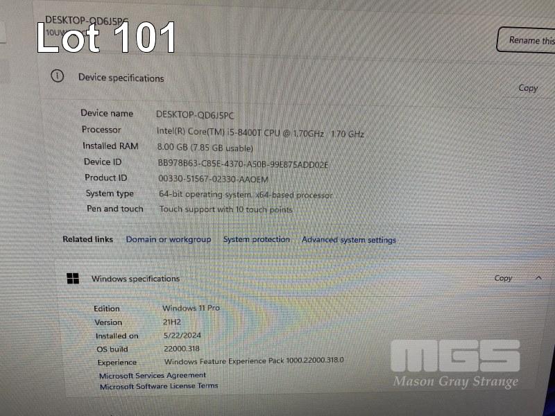 ALL-IN-ONE PC, LENOVO V530-24ICB, TYPE 10UW, CORE i5 8400T (8TH GEN) @ 1.7GHz, 8GB DDR4 RAM, 256GB NVMe M.2 SSD, INBUILT 23.8" TOUCHSCREEN (1920x1080), DVD-RW, INTEL UHD GRAPHICS 630, WEBCAM, Wi-Fi, BLUETOOTH, WINDOWS 11 PRO INSTALLED & POWER SUPPLY (NO KEYBOARD, NO MOUSE) S/N:MP1F6634