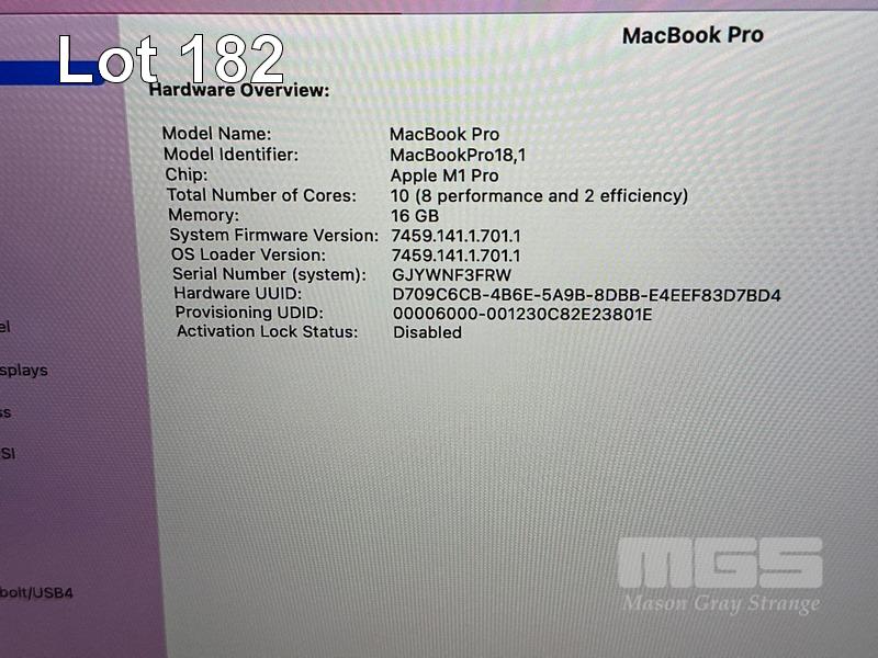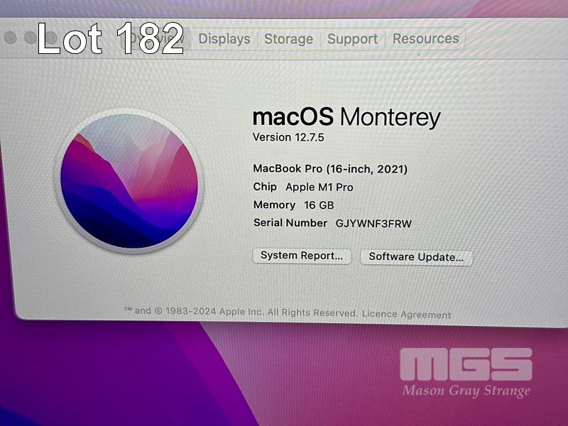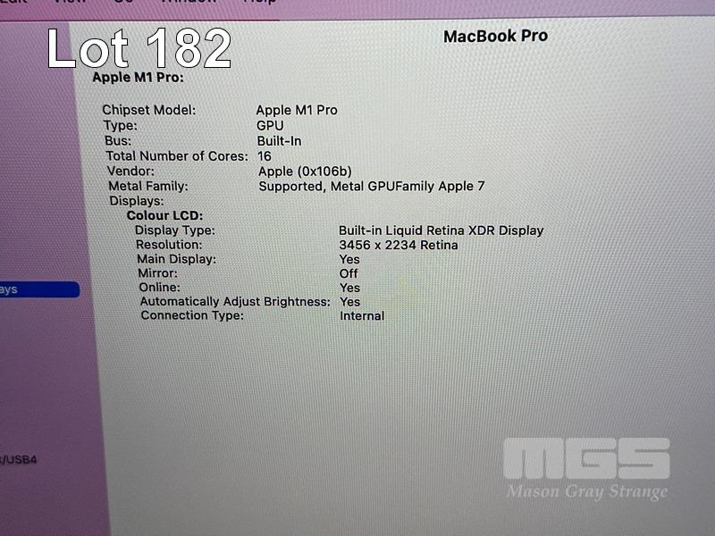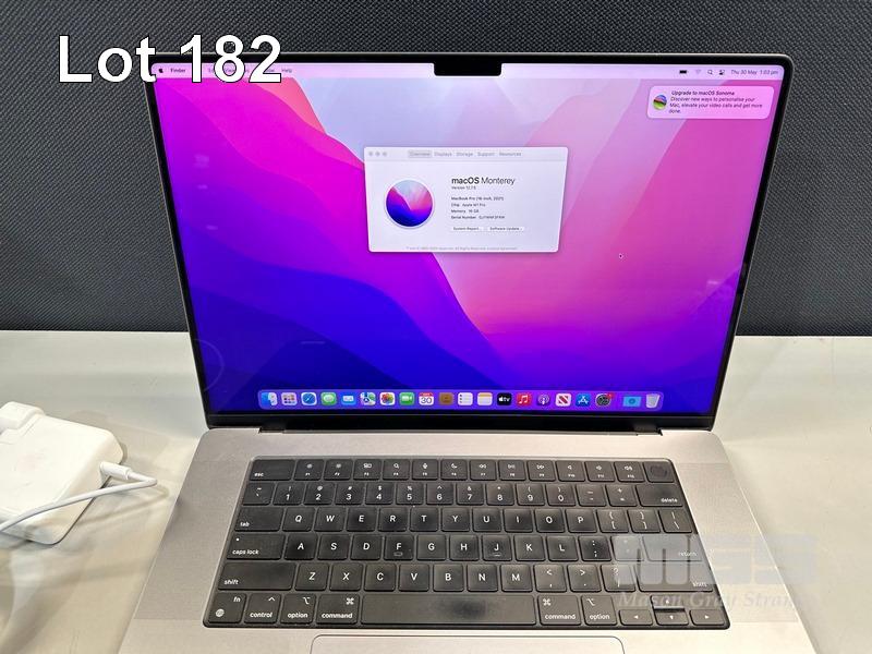 LAPTOP, APPLE MACBOOK PRO (A2485), APPLE M1 PRO 10 CPU/16 GPU, 16GB RAM, 512GB SSD, 16" LIQUID RETINA XDR DISPLAY (3546x2234), Wi-Fi, BLUETOOTH, MAC OS 12 INSTALLED & POWER SUPPLY S/N:GJYWNF3FRW