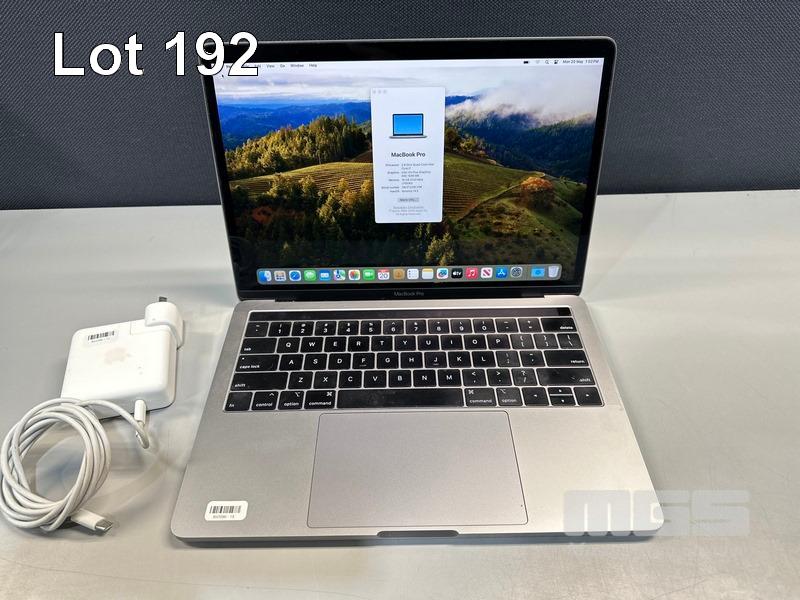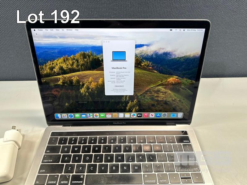 LAPTOP, APPLE MACBOOK PRO (A1989), CORE i7 8569U (8TH GEN) @ 2.8GHz, 16GB DDR3 RAM, 1TB SSD, 13.3" RETINA DISPLAY (2560x1600), INTEL IRIS PLUS GRAPHICS 655, Wi-Fi, BLUETOOTH, MAC OS 14 INSTALLED & USB-C POWER SUPPLY (NOTE: MARKS & SCRATCHES ON SCREEN) S/N:C02ZT2Z8LVDM