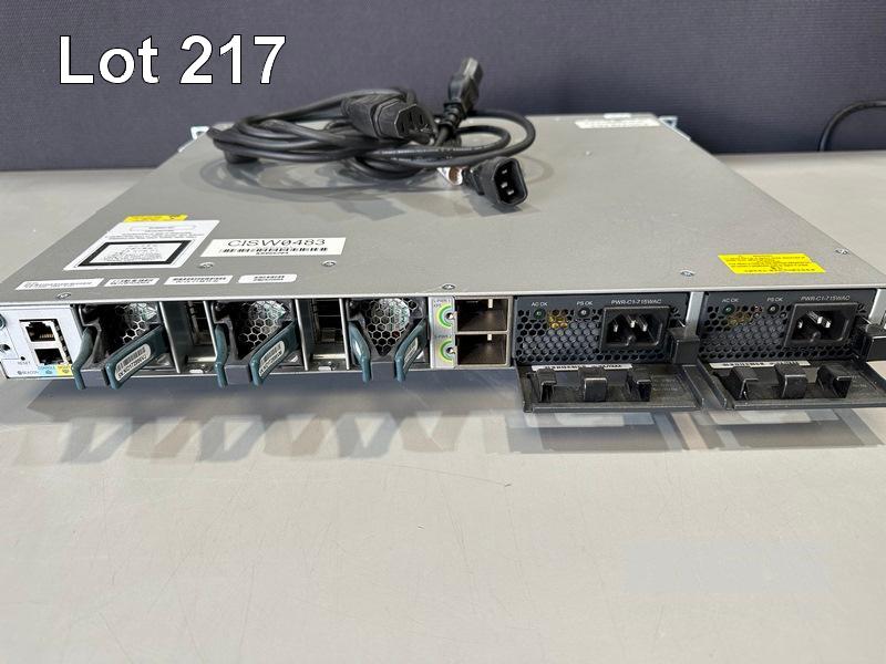 CISCO CATALYST 3850 XS 10G SFP+ 24-PORT SWITCH, WS-C3850-24XS-S V01 2 x PWR-C1-715WAC PSU WITH IEC-C14 TO C15 NOTCH POWER CABLES S/N:FCW1935D0UL