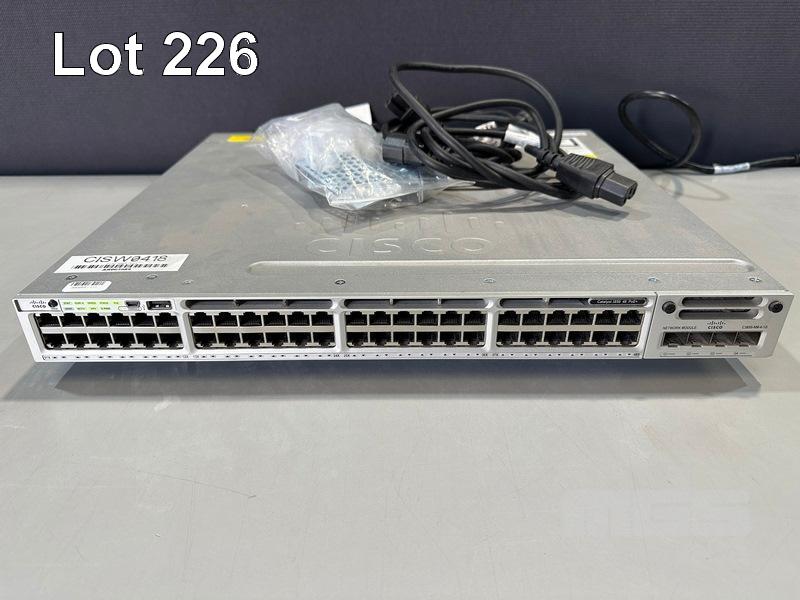 CISCO CATALYST 3850 48 PoE+ 48-PORT SWITCH, WS-C3850-48P-L V06 C3850-NM-4-1G NETWORK MODULE, 2 x PWR-C1-715WAC PSU WITH IEC-C14 TO C15 NOTCH POWER CABLES S/N:FOC1951U15D