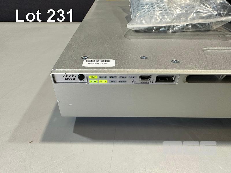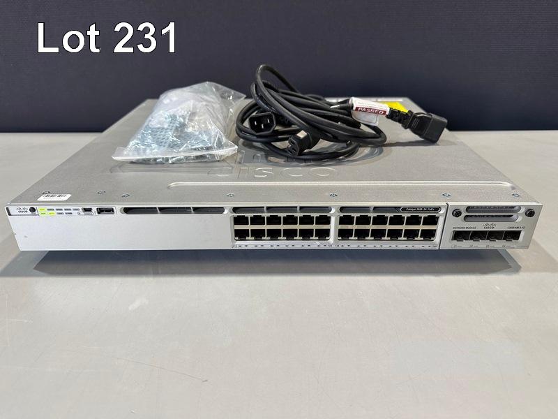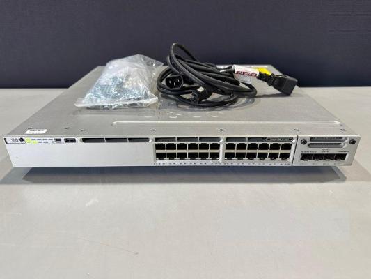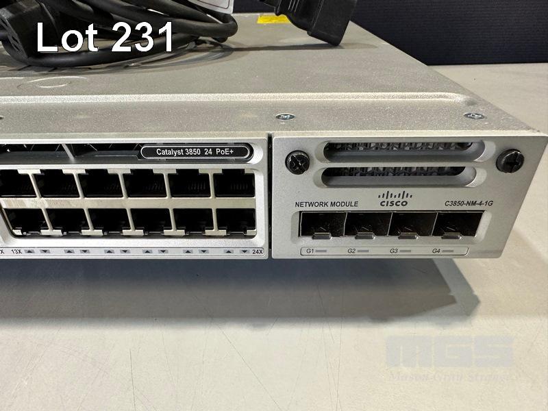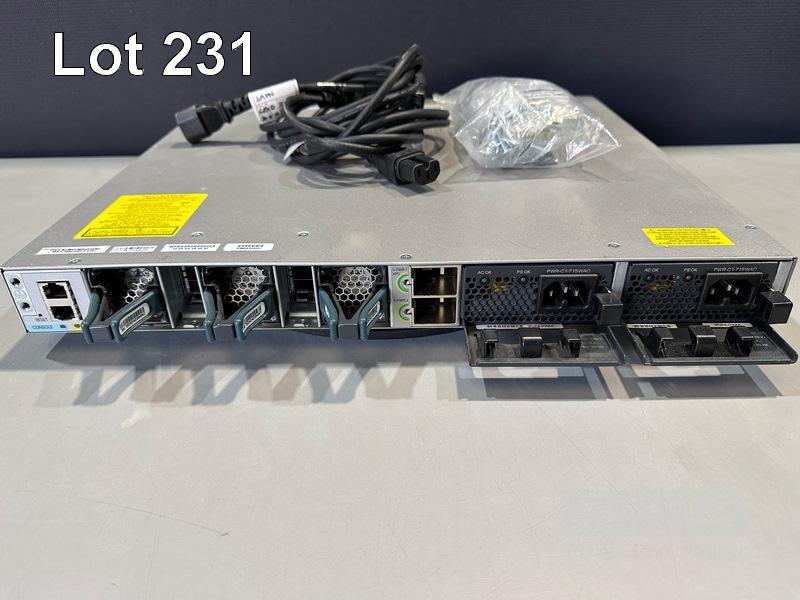 CISCO CATALYST 3850 24 PoE+ 24-PORT SWITCH, WS-C3850-24P-S V08 C3850-NM-4-1G NETWORK MODULE, 2 x PWR-C1-715WAC PSU WITH IEC-C14 TO C15 NOTCH POWER CABLES S/N:FOC2429LEZ9