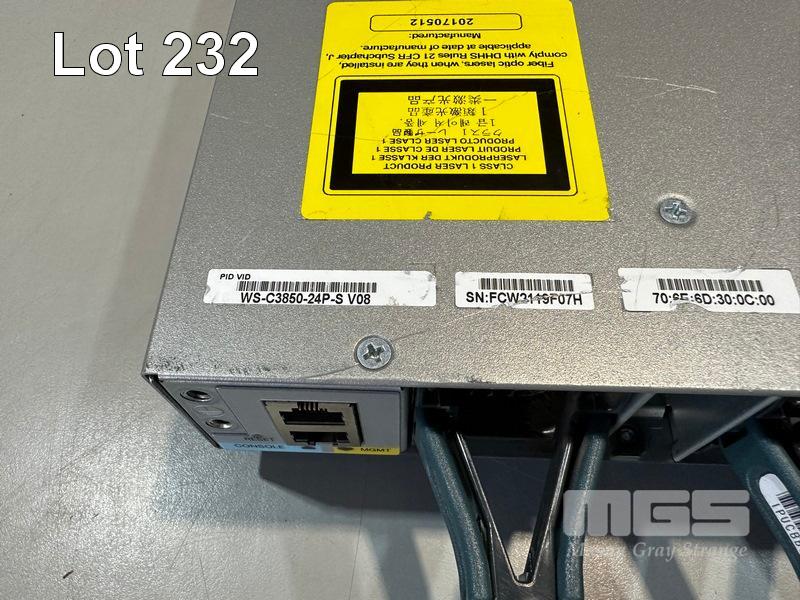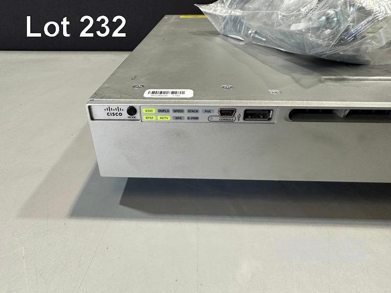 CISCO CATALYST 3850 24 PoE+ 24-PORT SWITCH, WS-C3850-24P-S V08 C3850-NM-4-1G NETWORK MODULE, 2 x PWR-C1-715WAC PSU WITH IEC-C14 TO C15 NOTCH POWER CABLES S/N:FCW2119F07H