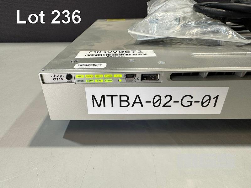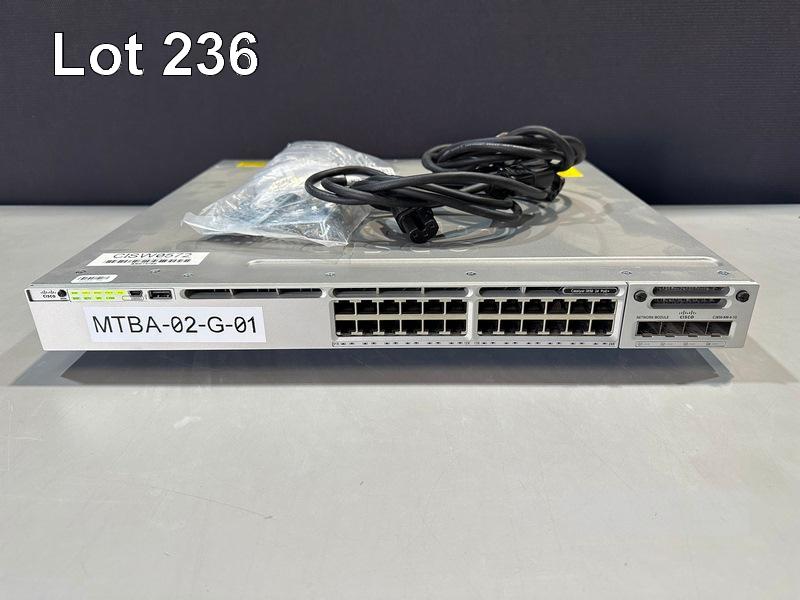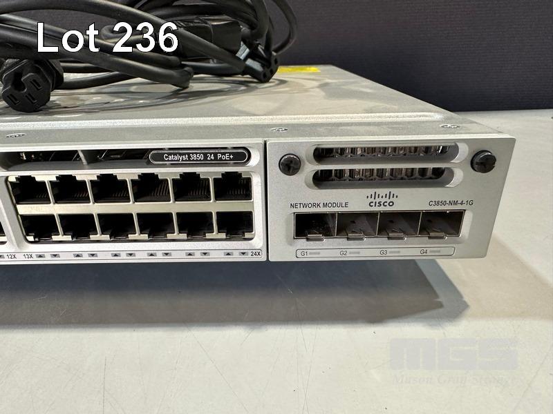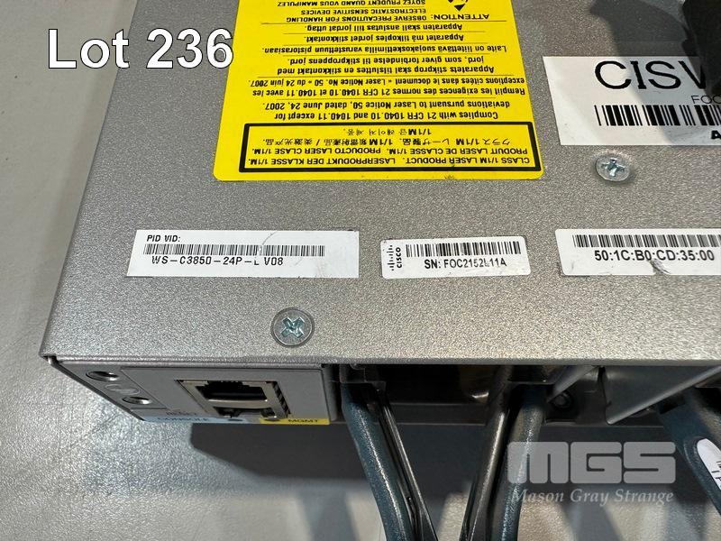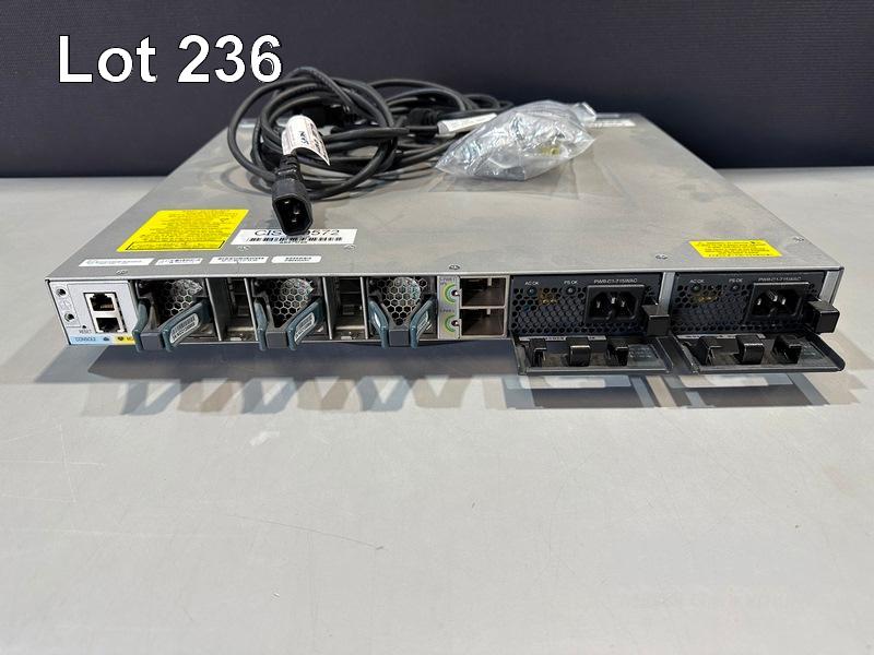 CISCO CATALYST 3850 24 PoE+ 24-PORT SWITCH, WS-C3850-24P-L V08 C3850-NM-4-1G NETWORK MODULE, 2 x PWR-C1-715WAC PSU WITH IEC-C14 TO C15 NOTCH POWER CABLES S/N:FOC2152L11A