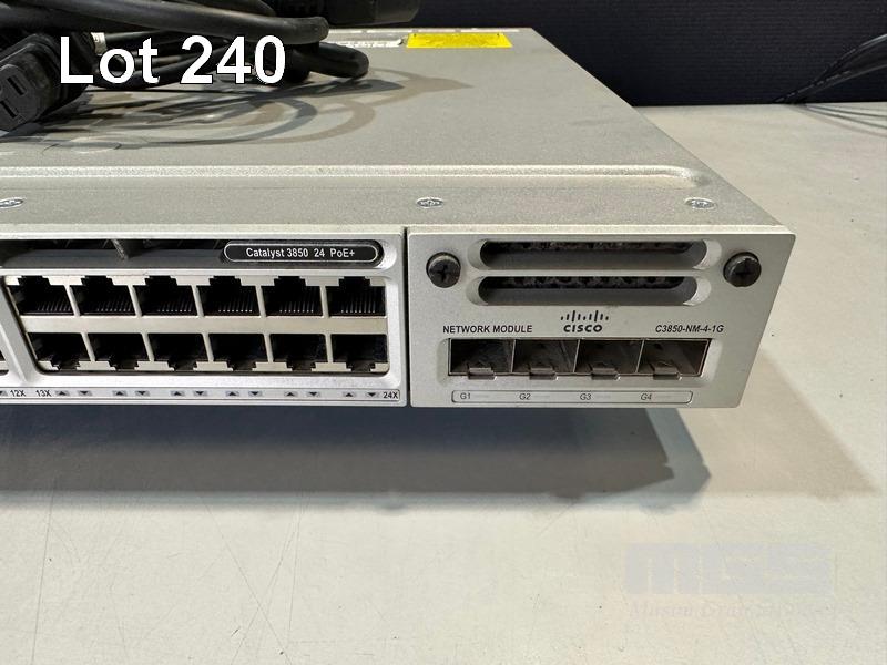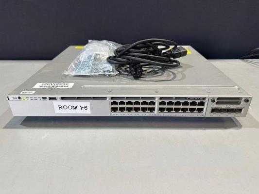 CISCO CATALYST 3850 24 PoE+ 24-PORT SWITCH, WS-C3850-24P-L V08 C3850-NM-4-1G NETWORK MODULE, 2 x PWR-C1-715WAC PSU WITH IEC-C14 TO C15 NOTCH POWER CABLES S/N:FOC2201Q0LN