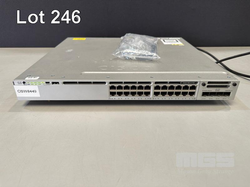 CISCO CATALYST 3850 24 PoE+ 24-PORT SWITCH, WS-C3850-24P-L V07 C3850-NM-4-1G NETWORK MODULE, 2 x PWR-C1-715WAC PSU WITH IEC-C14 TO C15 NOTCH POWER CABLES S/N:FCW1944C1SF