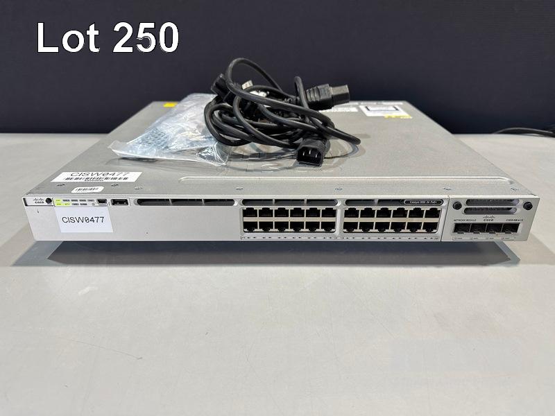 CISCO CATALYST 3850 24 PoE+ 24-PORT SWITCH, WS-C3850-24P-L V07 C3850-NM-4-1G NETWORK MODULE, 2 x PWR-C1-715WAC PSU WITH IEC-C14 TO C15 NOTCH POWER CABLES S/N:FOC1944U1NR